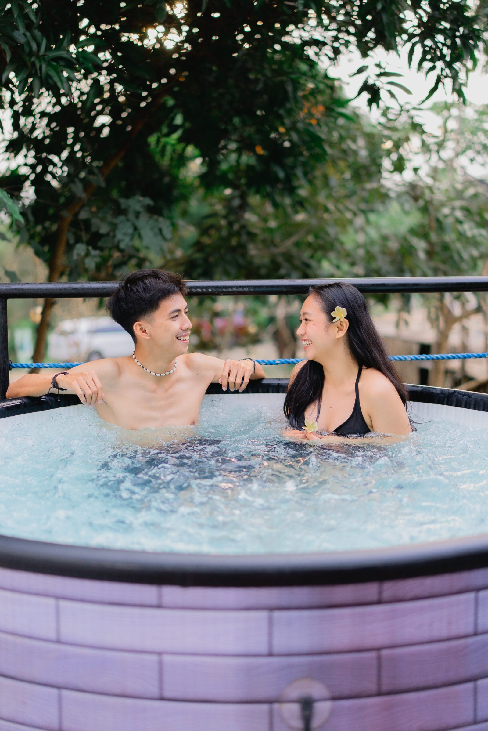 Relax and unwind in warm, bubbling water after a day of adventure.